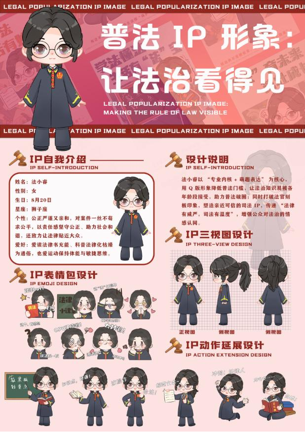 围绕Q版普法IP“法小睿”,团队打造全场景文创矩阵,让法律知识“藏”进生活细节。