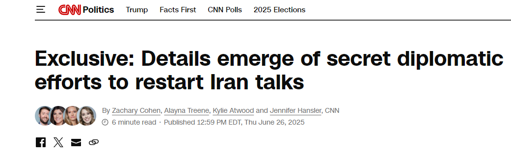 CNN26日援引知情人士消息报道称,在美国对伊朗实施军事打击的前一天,美国中东问题特使威特科夫与海湾国家合作伙伴20日在白宫举行长达数小时的秘密会议,商讨了一些细节。